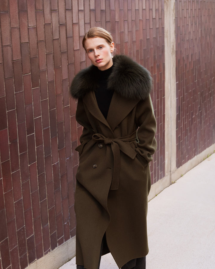 Accessorizing a long coat can completely transform your look. For a black long coat, colorful accessories like silk or wool scarves, or leather gloves, add an elegant touch of contrast. If you’re wearing a beige or camel long coat, choose accessories in warm, natural tones for a harmonious silhouette. A long coat with a fur collar can be elevated with subtle jewelry or styled with sneakers for a more original twist. On colder days, don’t forget knitted hats, beanies, or one of our detachable hoods, which add a chic touch while keeping you warm.