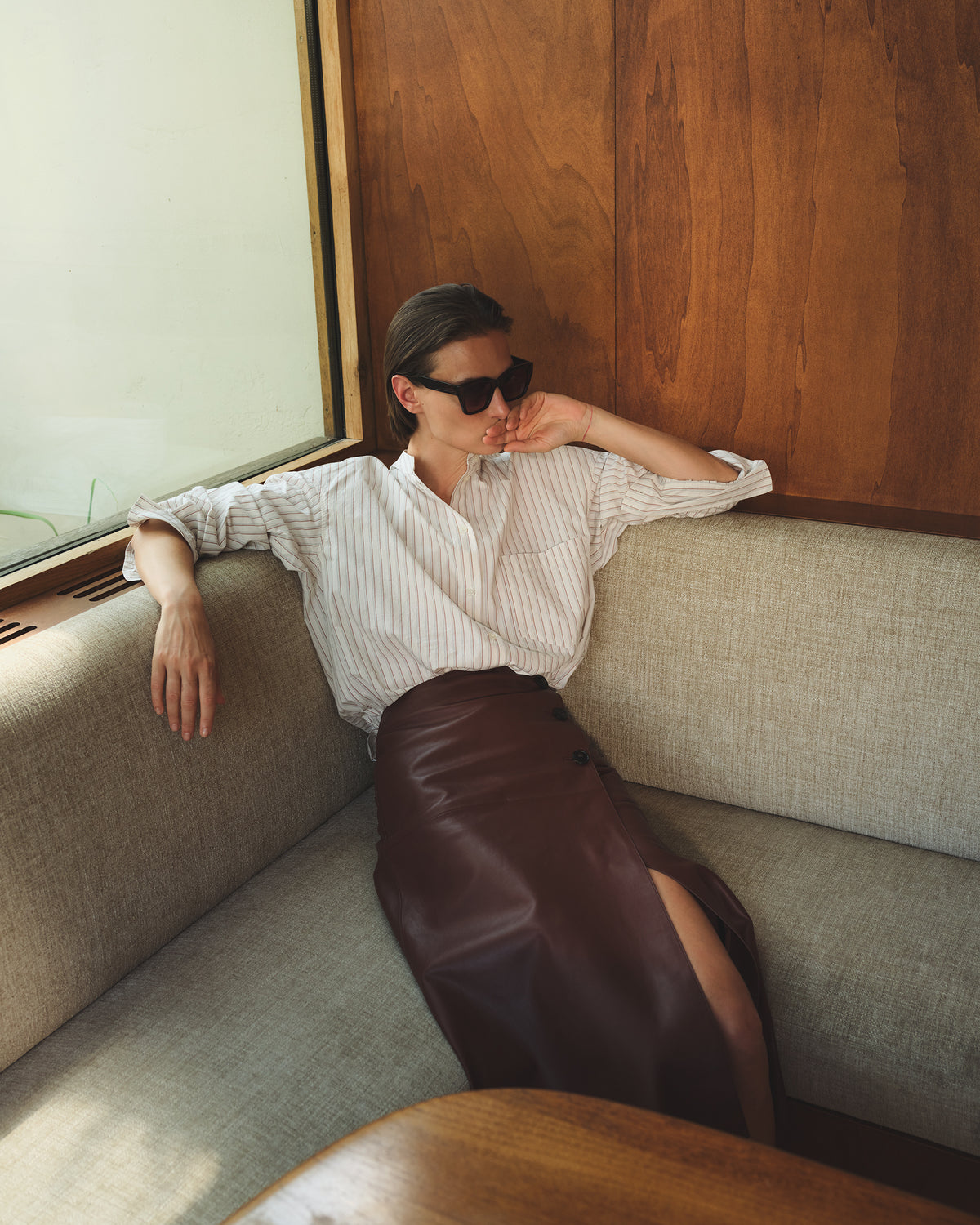 Relaxed weekend: Slip into your best leather pants with an oversized cashmere crewneck in camel or charcoal and white sneakers or ankle boots. A long wool coat completes the look, balancing ease with quiet elegance.