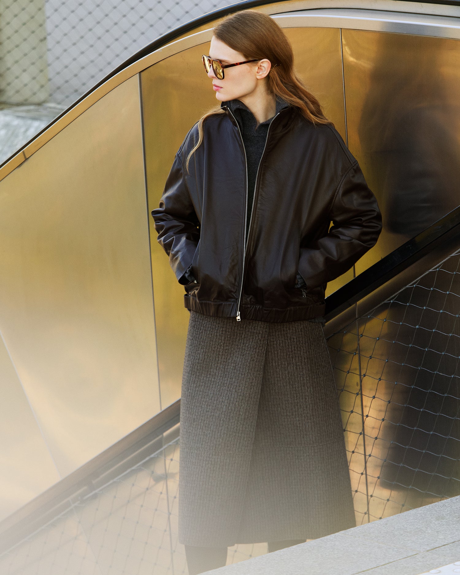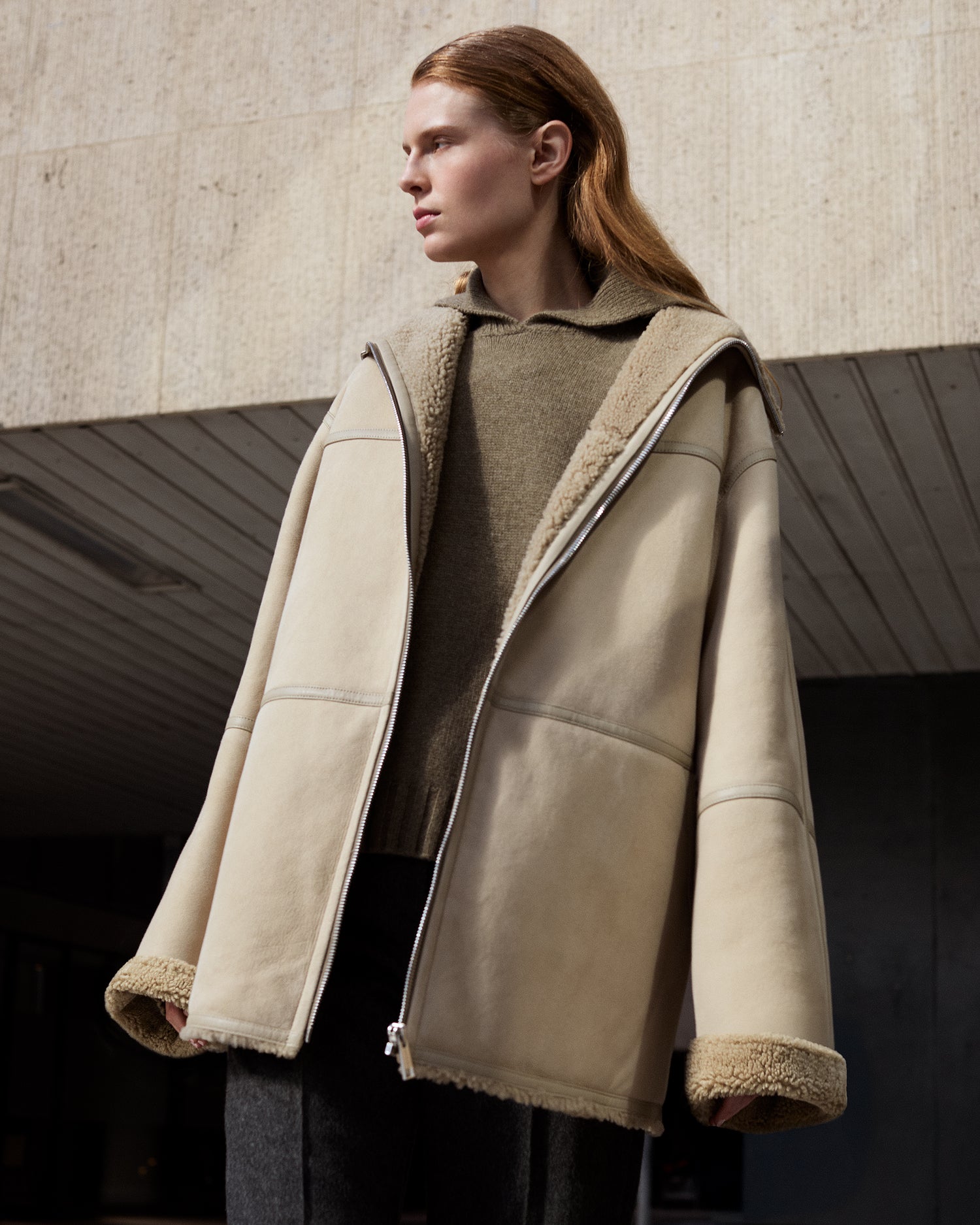 For the new season, Yves Salomon reinvents the art of women’s tailoring. Bold mini skirts, double-faced cashmere jackets, leather shirts, and shearling jackets create a structured, modern, and undeniably elegant wardrobe.