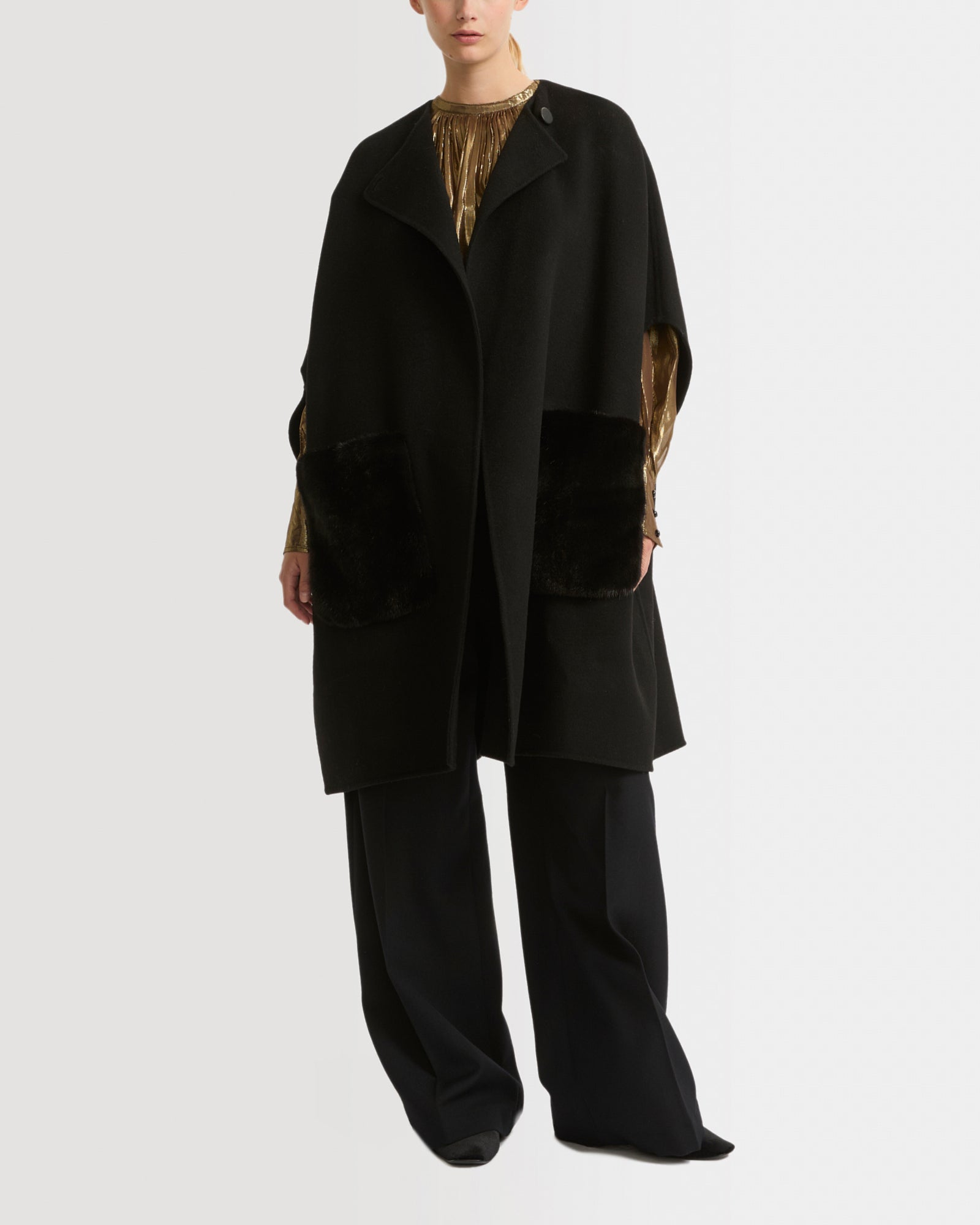 Cashmere blend cape with removable mink pockets