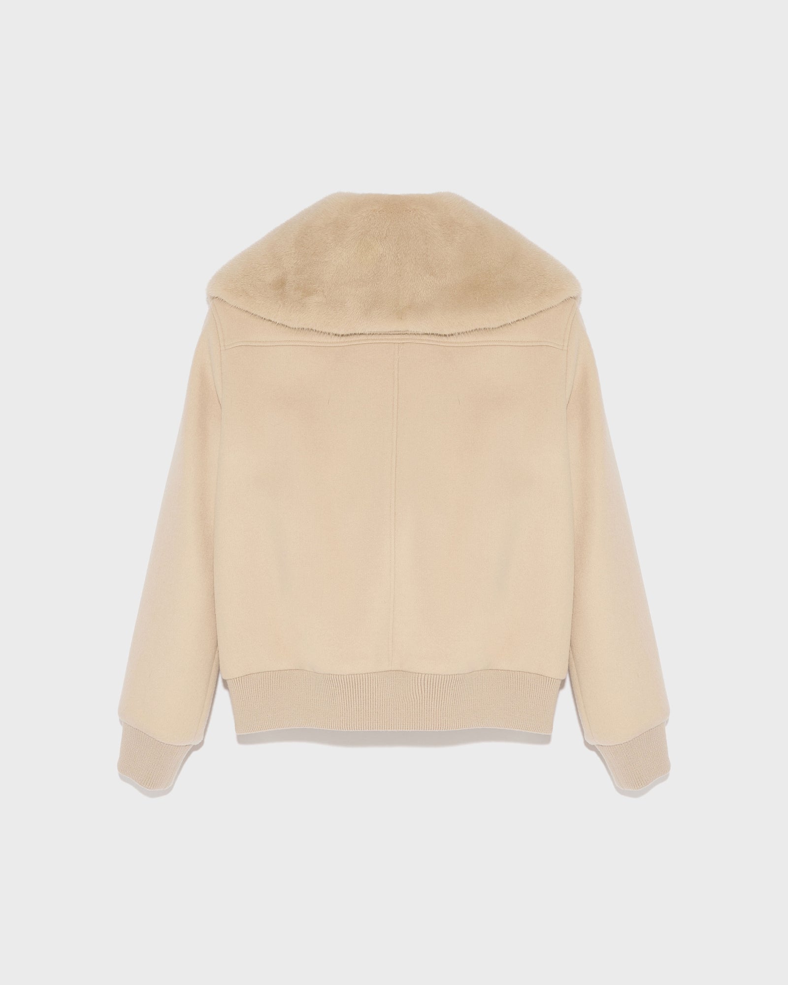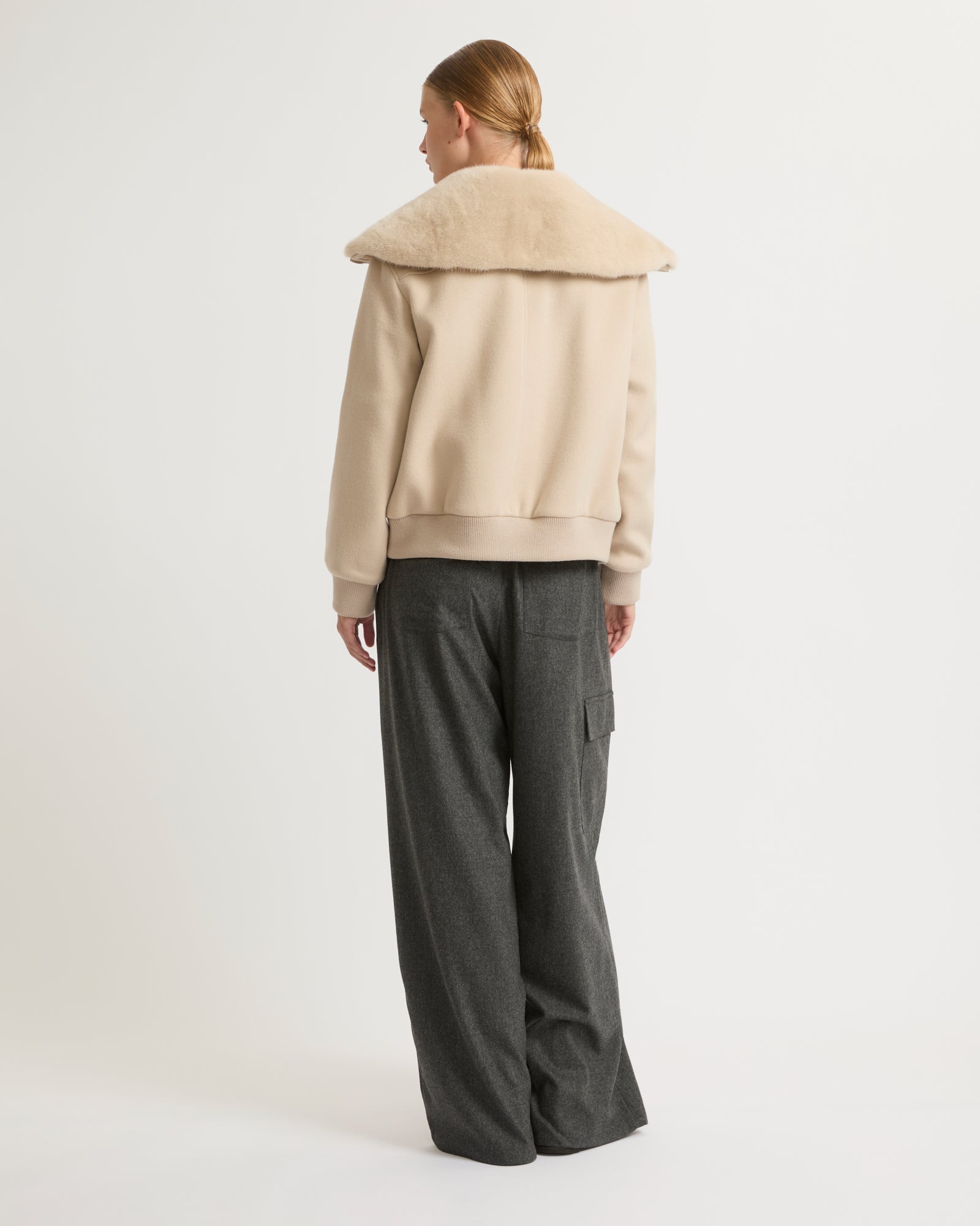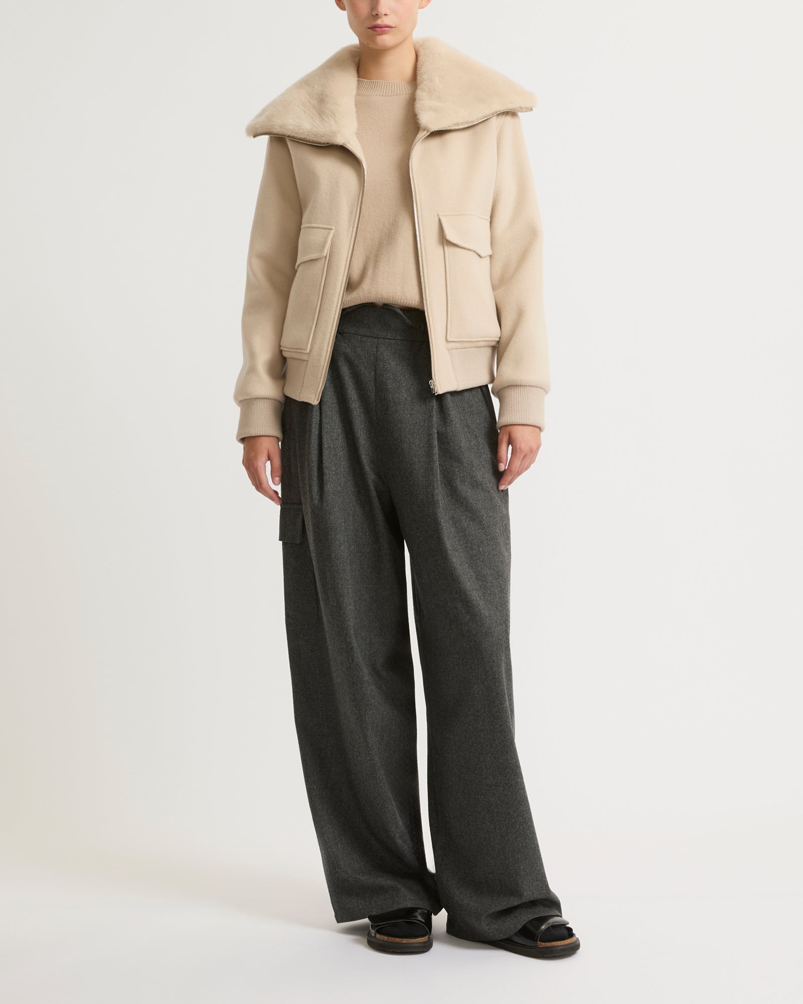 Crafted from silk-lined cashmere wool, this jacket mixes styles and inspirations. Featuring two patch pockets with flap, ribbed finishes and a contrast zip fastening with a branded slider, this model plays with the sportswear and utility codes. The removable mink fur collar adds an elegant touch and fits perfectly to the jacket thanks to a concealed button system. A versatile piece to suit every mood and create a resolutely modern look.