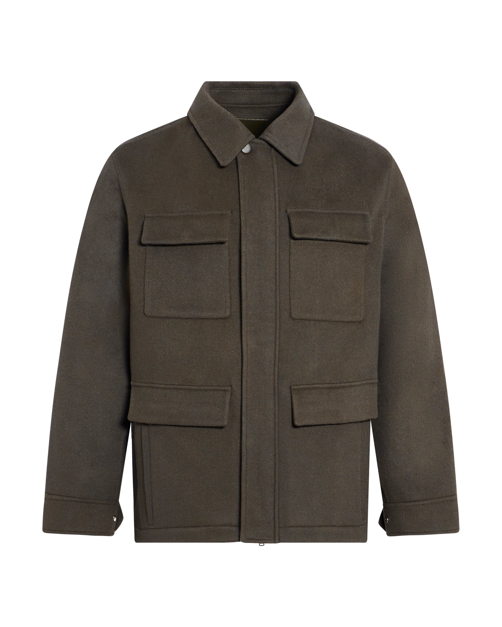 The softness of a wool and cashmere blend, worked as a double-sided design with invisible seams to create an impeccable finish. The press studs covered with matching leather create a further seamless effect. The fitted lines of this design add to the understated luxury of a timeless garment, inspired by a sportswear classic.