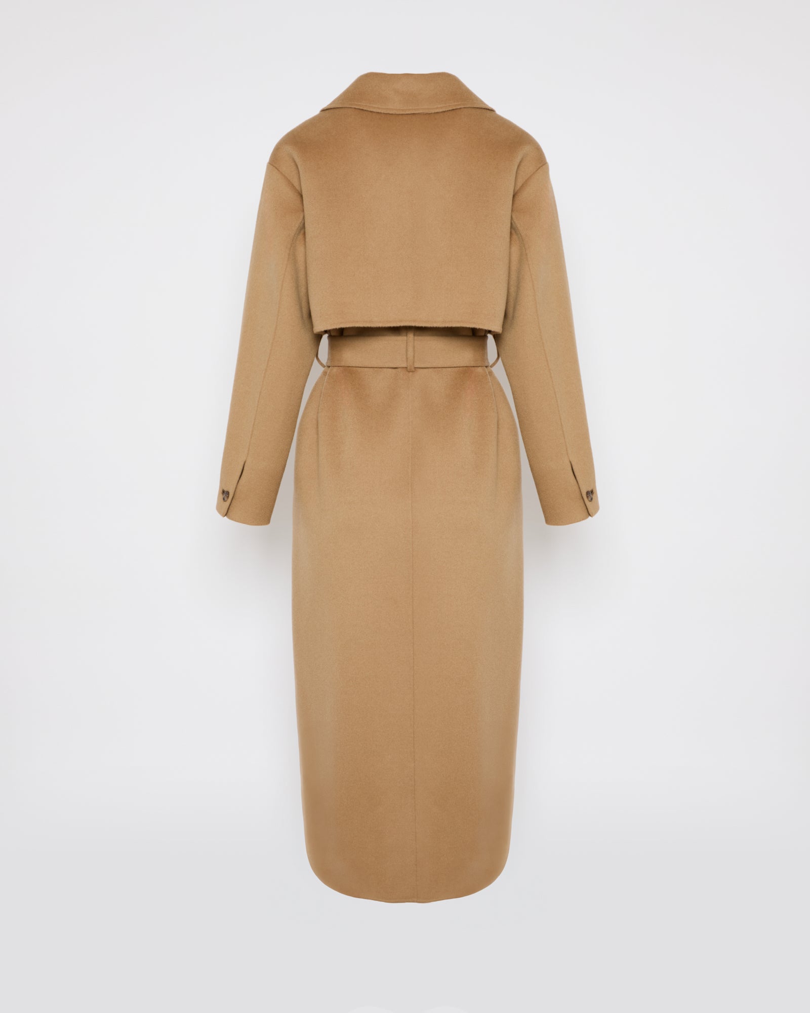 The timeless lines of the trench coat, worked in a luxurious double-sided wool blend, without any apparent stitching. The ankle length provides further allure for this sophisticated yet classic piece. Horn-effect logo buttons complete the look.