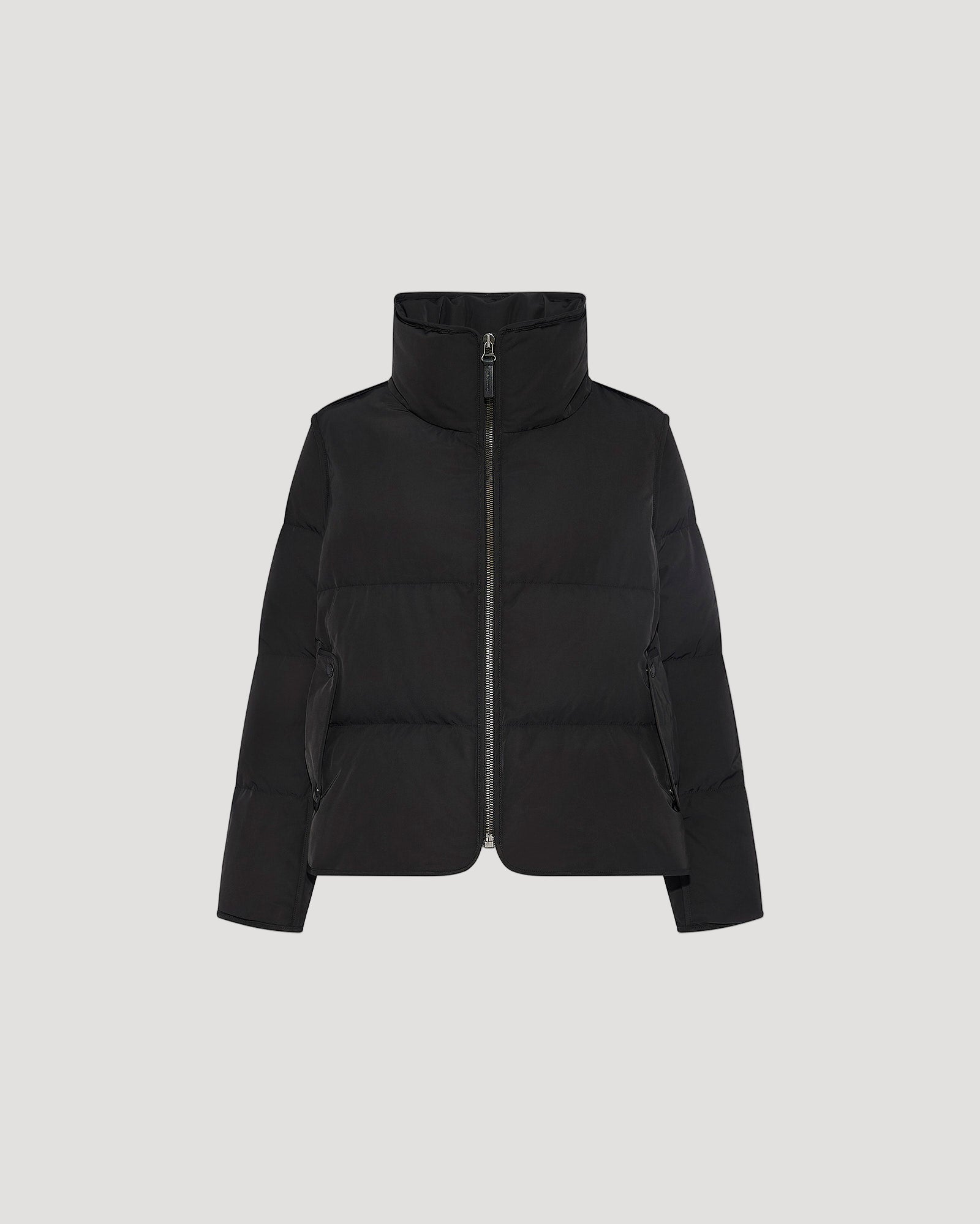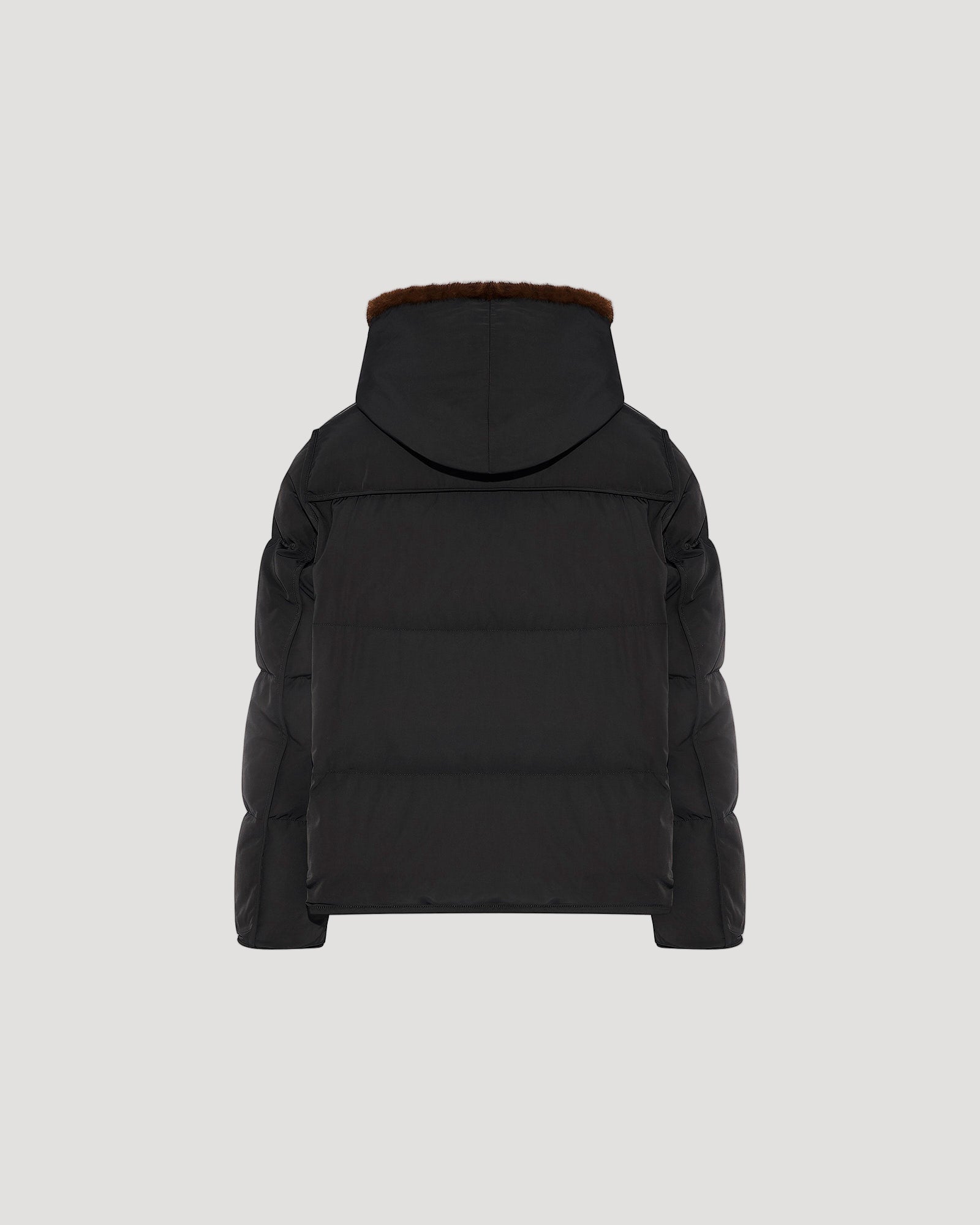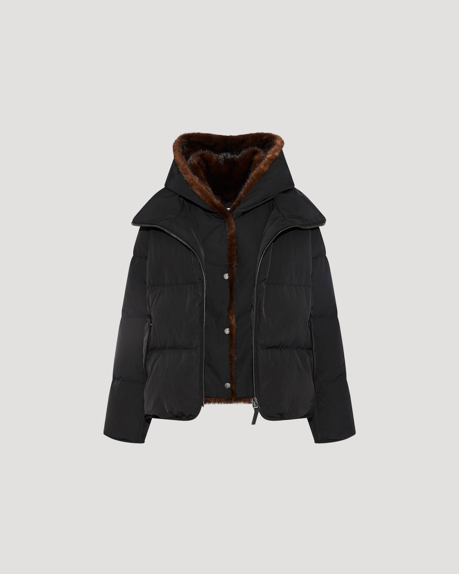 A warm and enveloping down jacket to embrace winter with ease. Crafted from technical fabric, this model is padded with high-quality down and duck feathers to guarantee comfort and breathability. Featuring a front zip closure, side zip slits and two flap pockets, this garment has a functional cut and a casual look. The removable hooded bib in long-haired mink adds a touch of femininity. A detail that makes all the difference for an elegant yet resolutely modern silhouette.