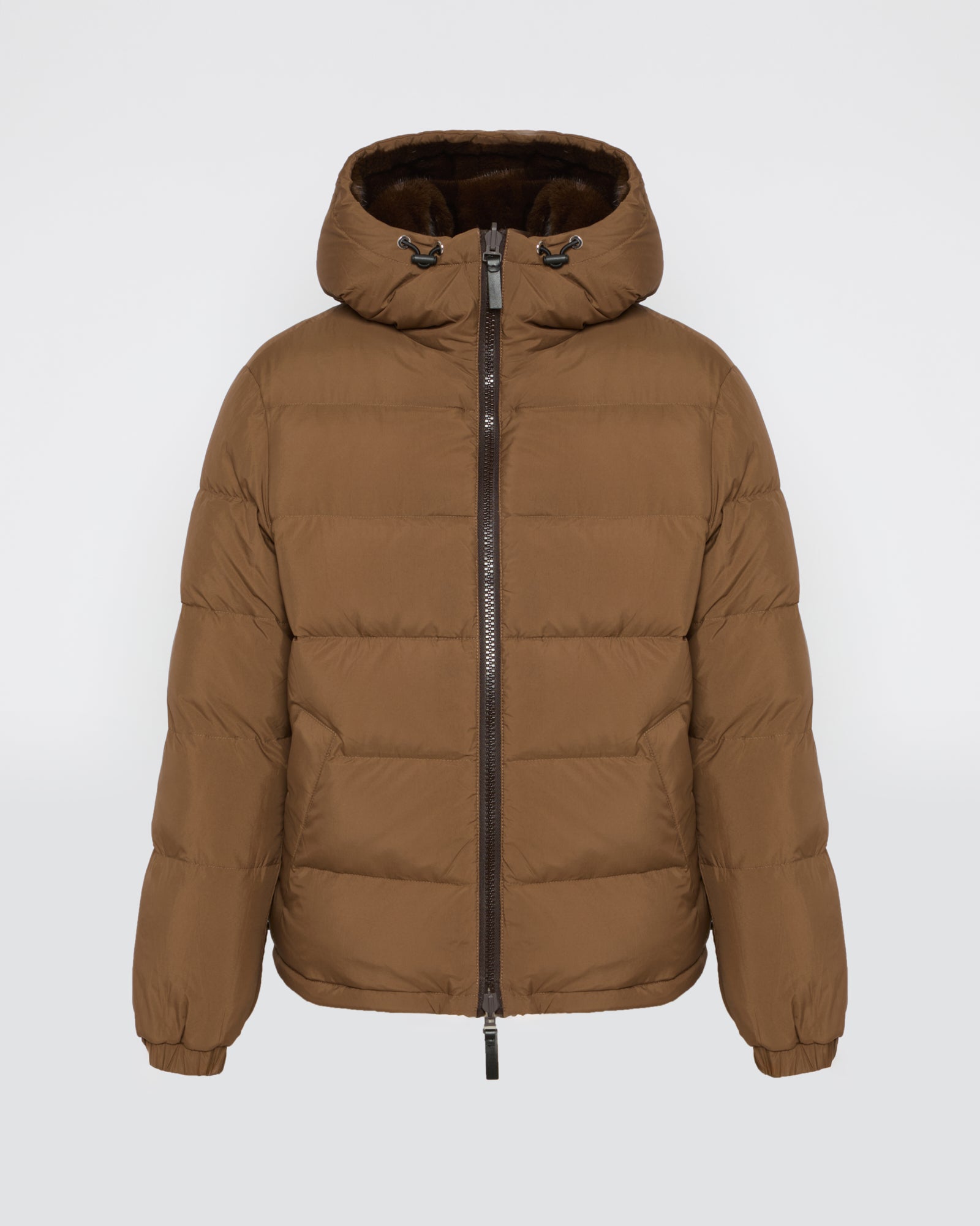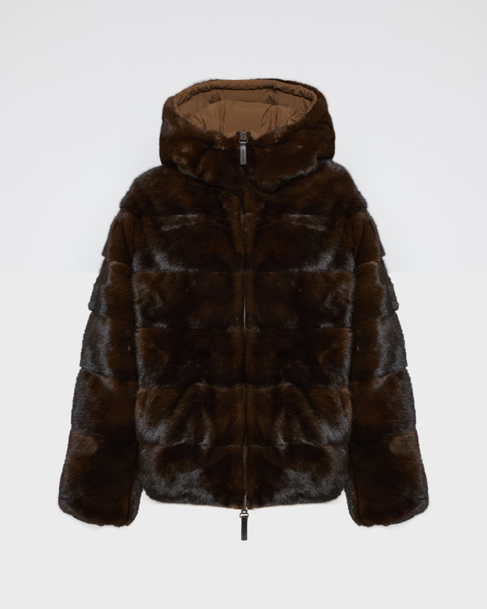 Clean lines and a sporty feel for this parka, tested at a temperature of -10°C. Reversible, its combines a technical fabric face with a luxurious, shiny mink fur face, worked to echo the geometric lines of the padded side. Its hood is also reversible.