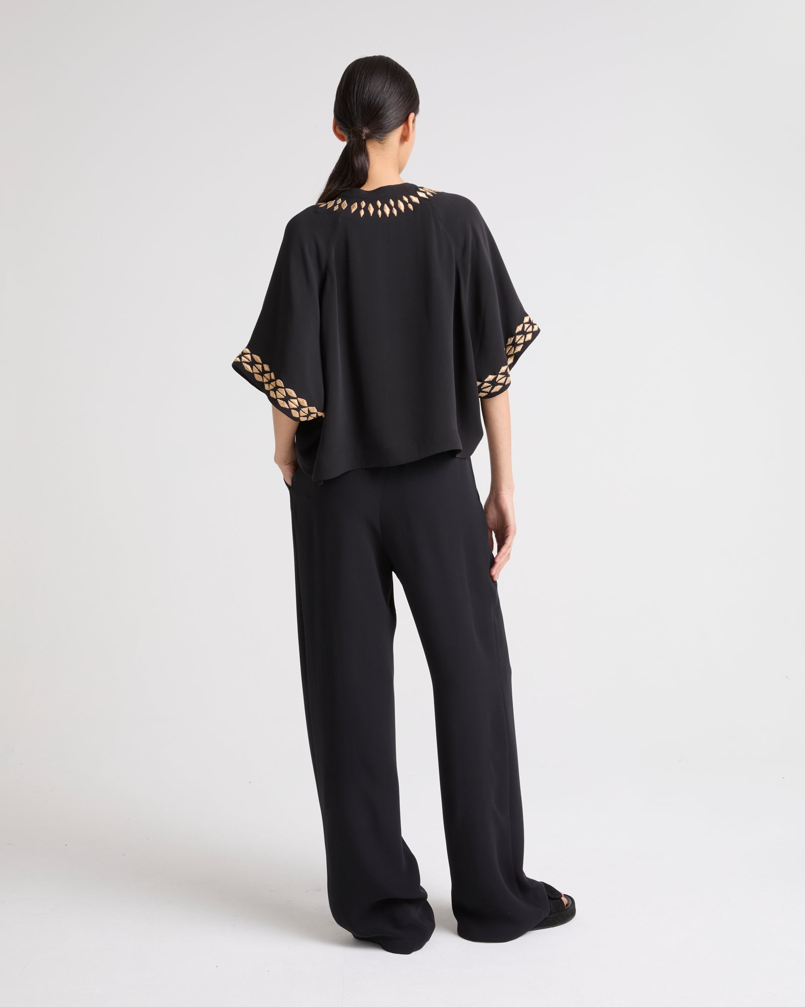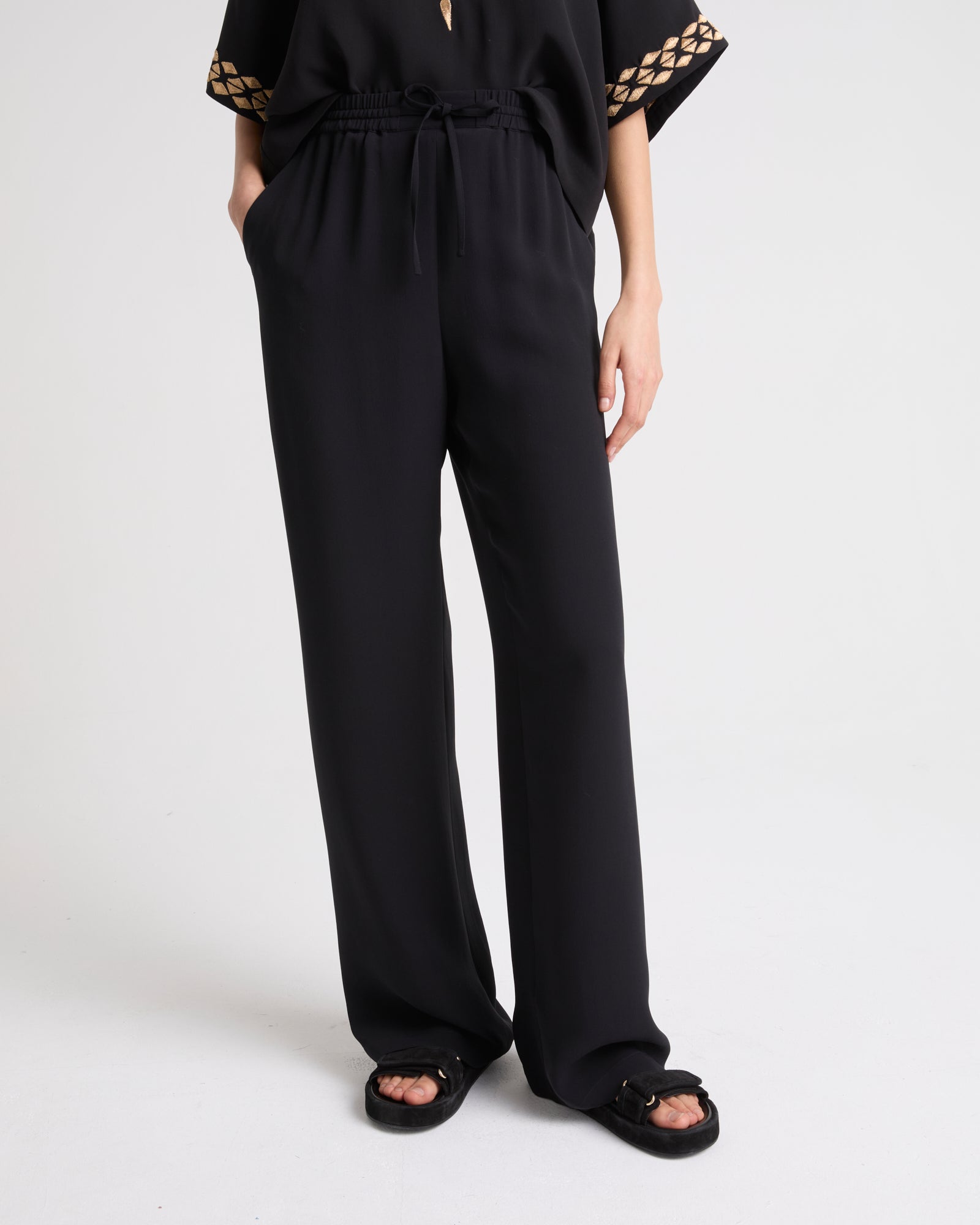 The ample, relaxed shape of these palazzo-style trousers is underlined by the fluid texture of silk crepe. A front knot and elasticated waist add further comfort to this summer design.