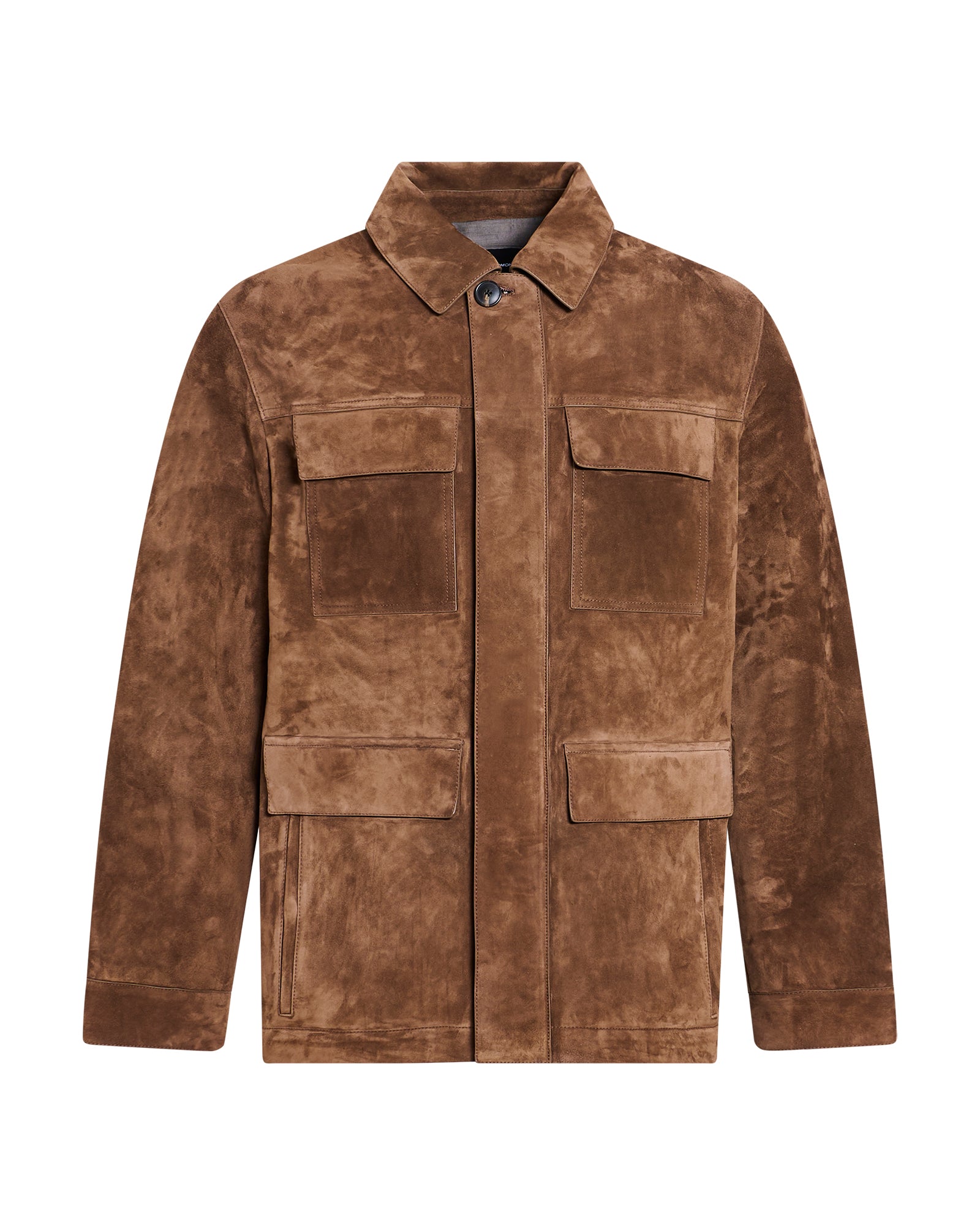 The supple leather of this safari-style jacket is perfectly suited to all seasons. Its relaxed silhouette and many pockets make this design with a soft suede-effect finish the versatile companion for all occasions. The unlined interior reveals a nubuck-effect texture. Perfect for a subtle, confident look.