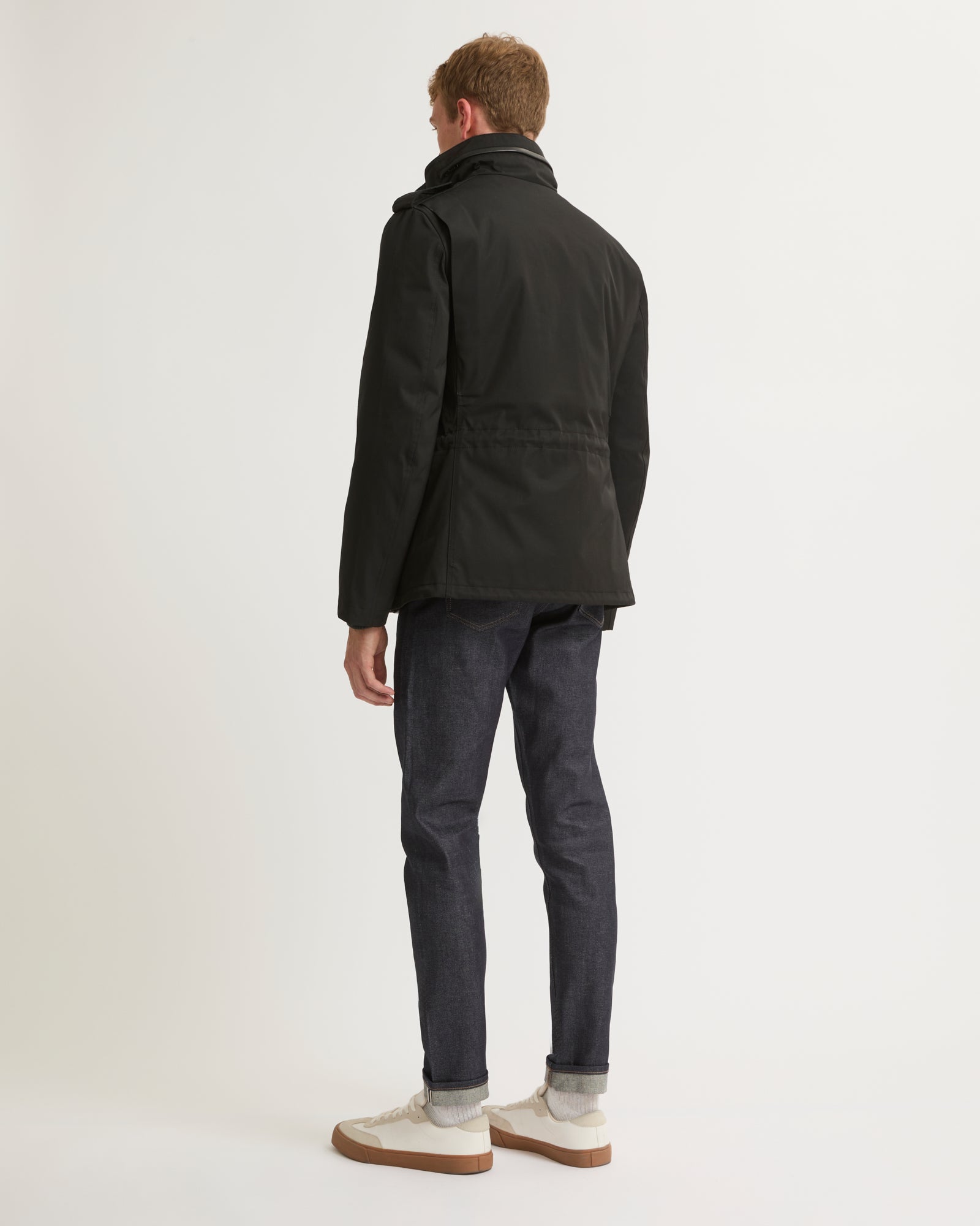 Taking its stylistic inspiration from the classic field jacket, this design is perfectly suited to face the trials of winter with elegance. Its technical gabardine fabric is proofed against all conditions, whilst providing a discreet shine. As well as its numerous practical pockets, the coat also features a multitude of clever details including a hodd hidden in the collar. A mink collar lining provides additional warmth and distinction for a timeless design, suited to all occasions.